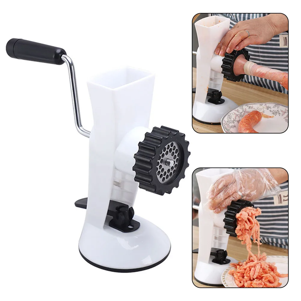 - Appareil 3-en-1Â : Hachoir Ă viande, machine Ă saucisse et moulin Ă main