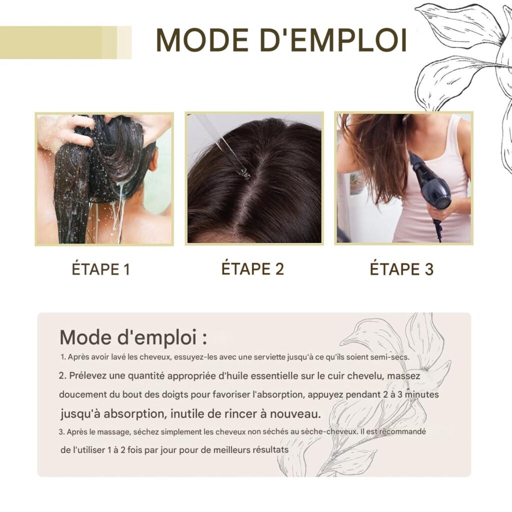 - Déposez quelques gouttes sur votre cuir chevelu