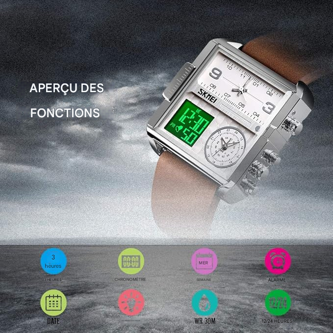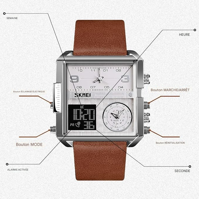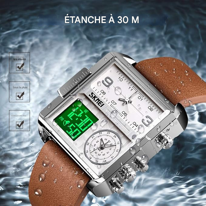 ⌚ SKMEI – Montre Homme Digitale de Luxe à Quartz – Boîtier Carré Métal Étanche
