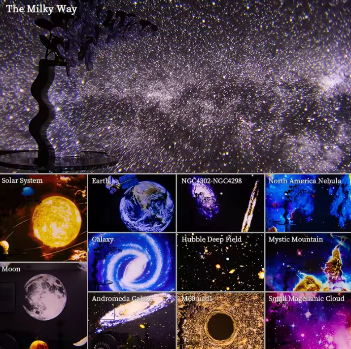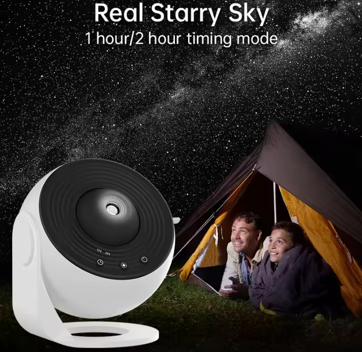 Design compact et portable : Son boîtier cylindrique élégant et léger s’intègre facilement dans n’importe quel espace, transformant votre intérieur en un mini-planétarium sans encombrement.